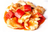 Gamberi fritti, maionese, esterno salmone salsa flambe.